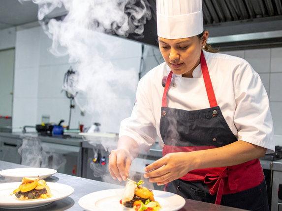 Les cuisines professionnelles ne sont pas les seules à profiter des qualités acoustiques de la technologie à induction. Dans un restaurant à cuisine ouverte ou lorsque les clients assistent directement à la préparation, l'ambiance sonore affecte l'expérience. Grâce aux équipements à induction, les équipes travaillent plus vite sans créer d'agitation ou de vacarme susceptibles de gêner. Comme la chaleur se concentre uniquement dans les récipients, le confort thermique est également meilleur.